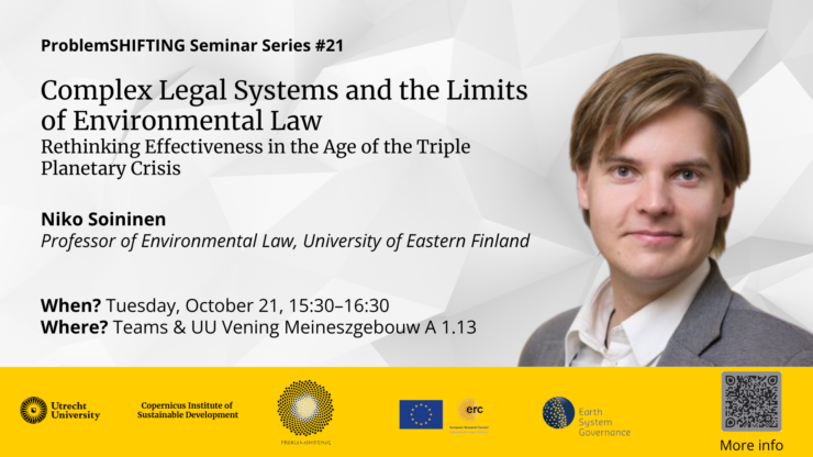 The ProblemSHIFTING Seminar Series offers a dynamic platform to explore the causes, impacts, and solutions to unintended consequences in environmental policies and decisions. By bringing together leading experts and fresh voices from diverse disciplines, the series highlights critical research in environmental law, politics, and governance, fostering innovative approaches to addressing environmental problem shifting. Each seminar features expert insights and thought-provoking discussions, with the flexibility to participate online via Microsoft Teams or in person at Vening Meineszgebouw A, Utrecht Science Park. For enquiries, please contact the seminar series coordinators: Ashok Vardhan Adipudi and Işık Girgiç.
